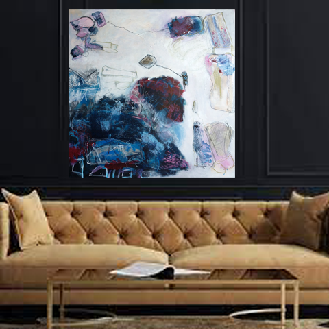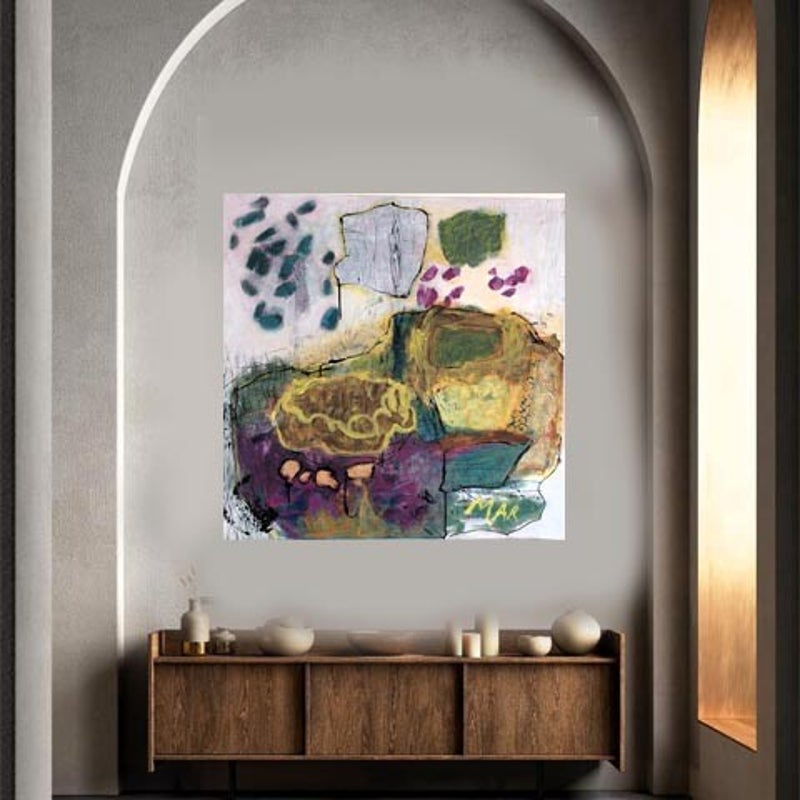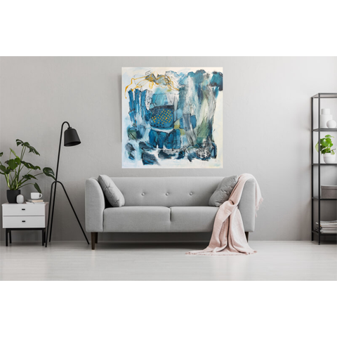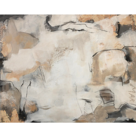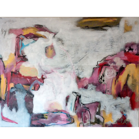 Mixed media, acryl, verdikkingspasta, inkt, parelmoer
